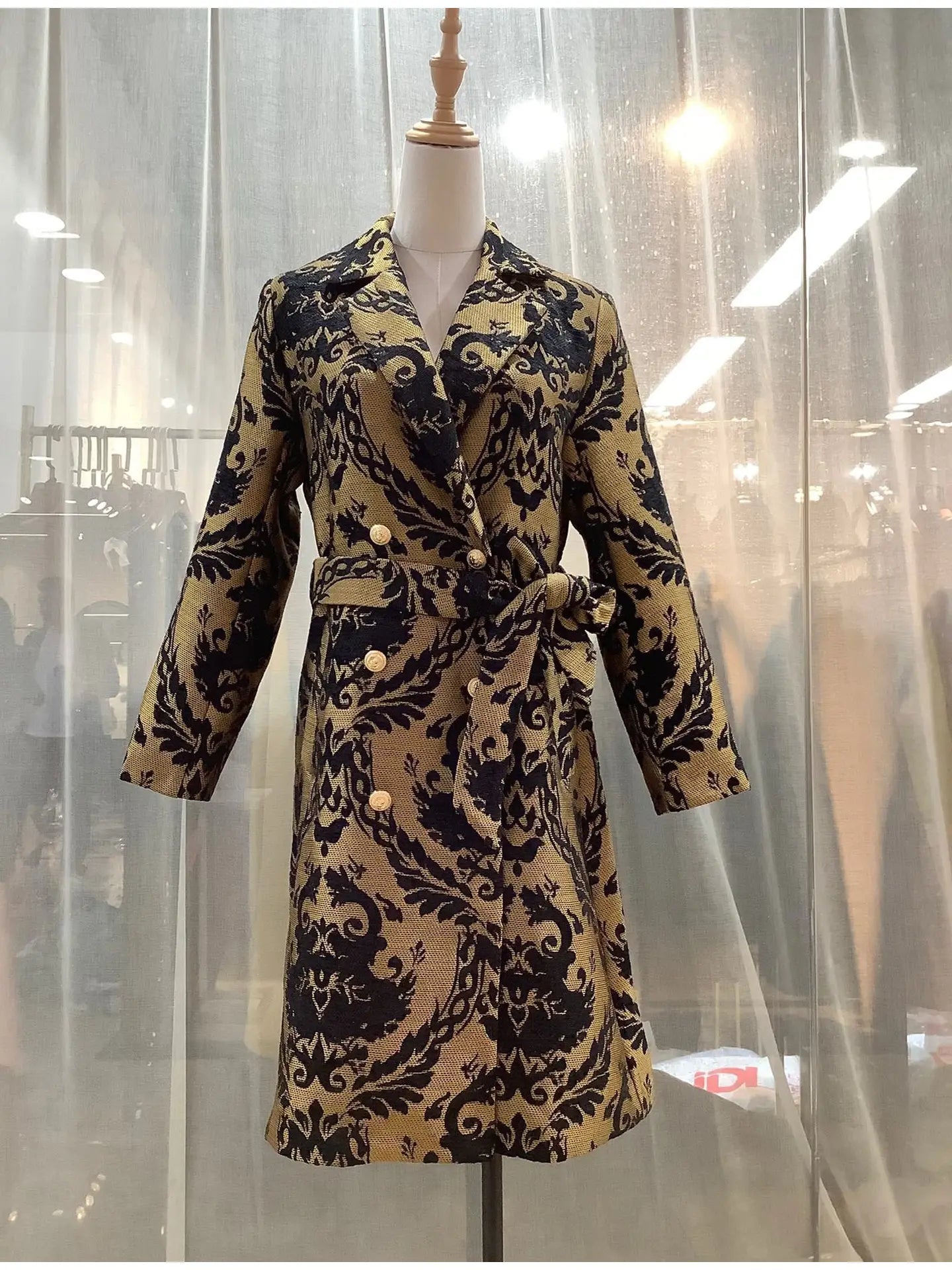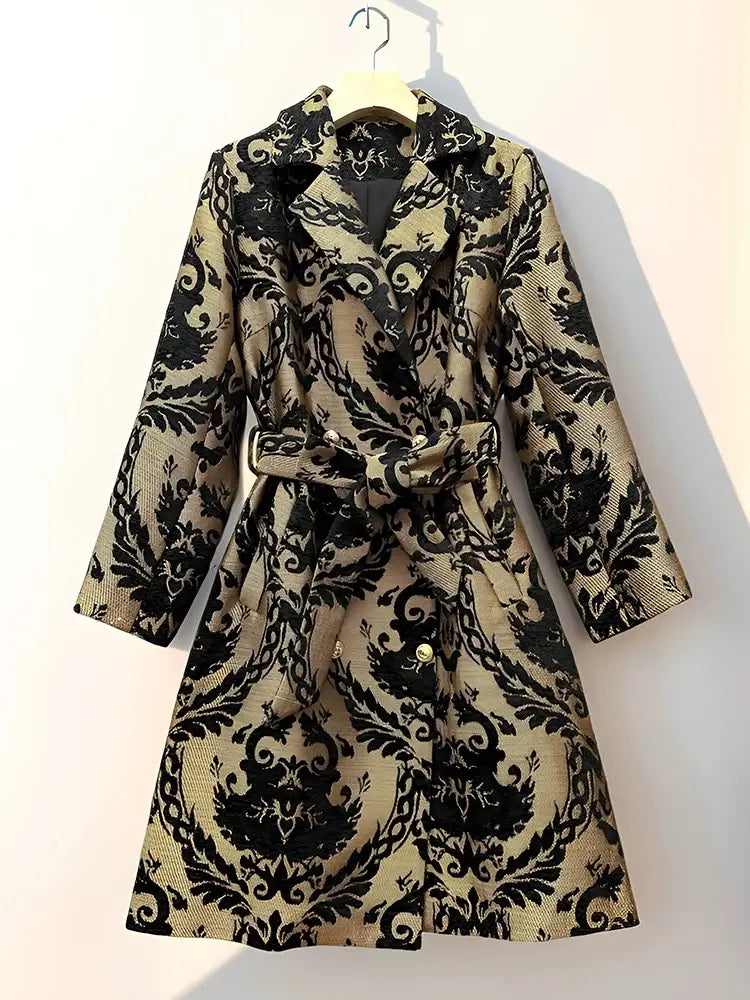 The Versailles Trench, designed for fall and winter, features detailed heavy embroidery that adds a sophisticated and artistic dimension to the garment. Its mid-length silhouette balances coverage with elegance, making it ideal for layering during seasonal transitions. Meticulously crafted, the embroidery reflects a high level of refinement and unique artisanship. This versatile coat complements dresses, skirts, and trousers alike, suitable for casual wear, professional settings, or formal occasions. Combining comfort with polished style, it harmonizes classic appeal with modern design, offering a distinguished outerwear choice for women who appreciate both individuality and elegance.